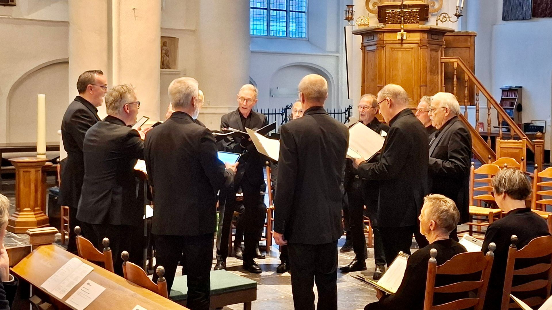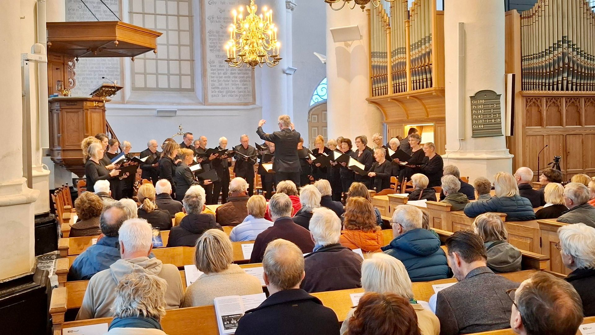 Een greep uit de reacties die we ontvingen na afloop van ons Allerzielenconcert van zaterdag 8 november j.l. De kerk zat vol, de muziek was stemmingsvol en troostrijk. Het orgel, bespeeld door Pim Schipper, klonk zowel warm en omfloerst als helder en sprankelend. Het spannendste stuk was voor het laatst bewaard: dirigent Bernhard Touwen ging het experiment met ons aan door ons in vier groepen te splitsen en te laten verspreiden door de kerk. Vanaf deze plekken zongen we op verschillende snelheden de beginregels van het lied 'Komm, süsser Tod' van Bach, naar een bewerking van de Noorse componist Knut Nystedt. Dit 'Immortal Bach' leverde een fascinerende 'soundscape' op. Een ontroerend slot, die omarmende klanken die de hele ruimte vulden, dat wegstervende 'Friede'...