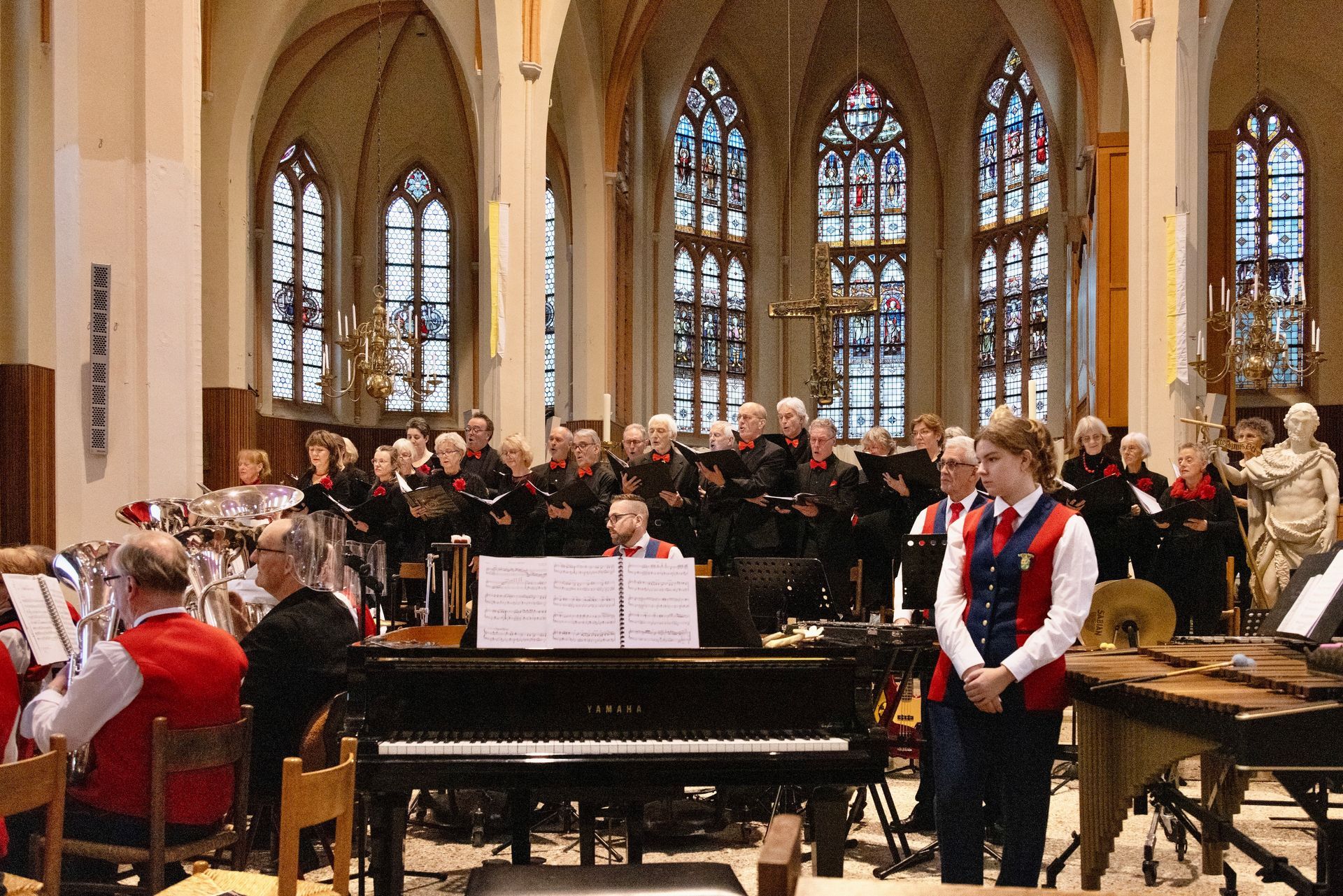 Het was een bijzonder kerstconcert dit jaar, in de katholieke kerk van Wijk bij Duurstede. Muziekvereniging Excelsior Cothen en Wijks Vocaal vonden elkaar in een kleurrijk gezamenlijk muzikaal programma van de fanfare, de malletband (melodisch slagwerk) en koor in afwisselende combinaties. Naast de passanten van de kerstmarkt bij het inspelen en -zingen genoten ruim honderdvijftig bezoekers van bekende en minder bekende kerstnummers en liederen. De aftrap van de fanfare met het koor was de Kerstsuite, waarin componist Jan de Haan welbekende kerstliederen verwerkt. Na de pauze opende de Christmas fantasy-medley van dezelfde arrangeur met Engelse traditionals het tweede deel. Verder werd het publiek in de kerstsfeer meegenomen met heel gevarieerde muziek en instrumentatie, van Silent Night door de fanfare tot het ingetogen Of a Rose van de gevierde Engelse koorcomponist John Rutter door het koor, tot en met een vrolijke Polar Express en sfeervolle Earthsong van de malletband. In de finale, met het bekende en populaire Hallelujah van Leonard Cohen kwamen alle muzikanten met hun drie dirigenten samen, met alles erop en eraan. Dit complete kerstconcert en de samenwerking van beide verenigingen was een primeur, maar is misschien ook niet zo verrassend. Al diverse jaren repeteert Wijks Vocaal namelijk met plezier elke woensdagavond in de grote oefenruimte van Excelsior in Cothen. Hoog tijd dus dat we elkaar wat beter leerden kennen en in die opzet zijn we goed geslaagd.